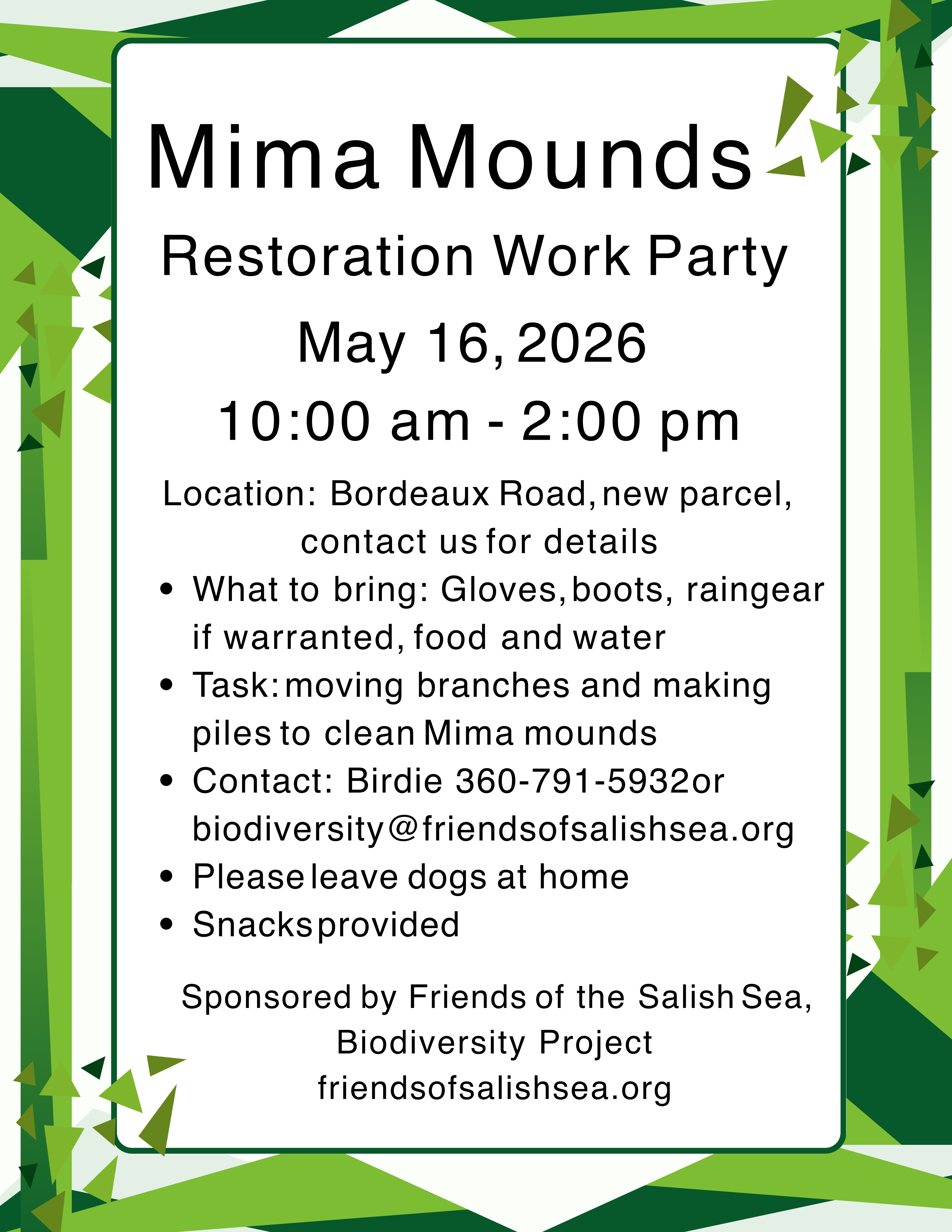 Austin Greene, Ph.D., Lead scientist for Washington Department of Natural Resources, Aquatic Reserves Program April 30, 2026 7:00 pm, Lacey Community Center Austin Greene leads a team of scientists and technicians working to better understand the unique habitats on eight Aquatic Reserves in Washington and the impacts challenging the future of these ecosystems. In this […]