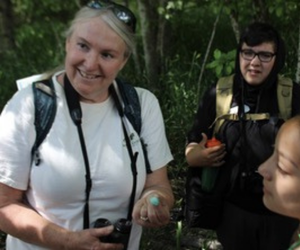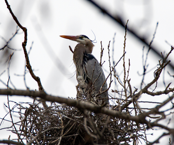 Anne Winkes is a Skagit Land Trust community science volunteer, who has observed and recorded great blue heron behaviors throughout the breeding and nesting season every year since 2013. Anne observed at the Samish Island heronry from 2013 to 2017 and then, following the abandonment of that heronry, has observed at the March Point heronry from 2018 to the present.